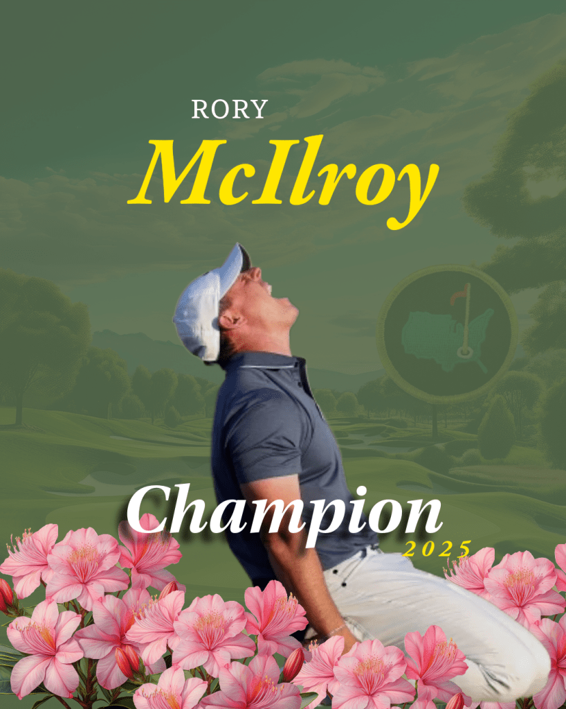 This activity required the usage of AI and Photoshop together to generate an image. I chose to replicate and re-imagine a graphic of Rory McIlroy after his championship finish at the 2025 Masters Tournament. I used AI to create the background, logo, and flowers present in the design, and then used Photoshop to add in the photograph of McIlroy and the font. This excersie allowed me to use my generative AI skills as well as my Photoshop skills to make something both detailed and complimentary to the original design.